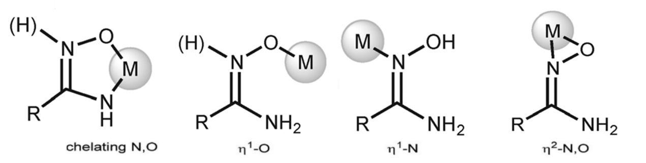 圖1、偕胺肟官能基可能與金屬產生多重配位模式