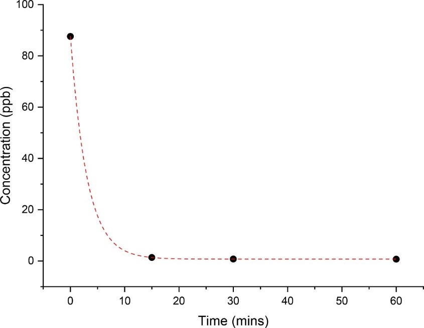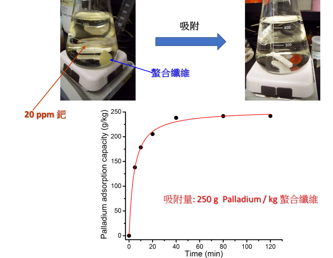 圖7、鈀金吸附實驗照片與吸附動力學曲線