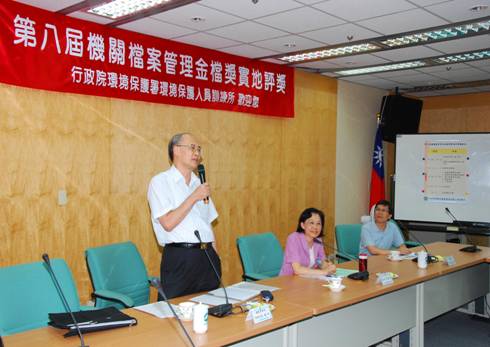 改善及建置各項檔案軟硬體設施,一路走來已3年多,深感於一群默默耕耘同仁的辛勞與無怨無悔的付出,所有的功勞都歸屬各級長官及全體同仁的。環訓所能榮獲第8屆檔案管理金檔獎就代表檔案管理已進入正軌,就好比是種子發芽的階段,要長高茁壯甚至開花結果,需要不斷地滋養它、照顧它、去蕪存菁。創新維艱守成不易,檔案管理是百年大計,在已建立之良好基礎上,「環保更專精