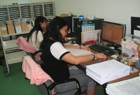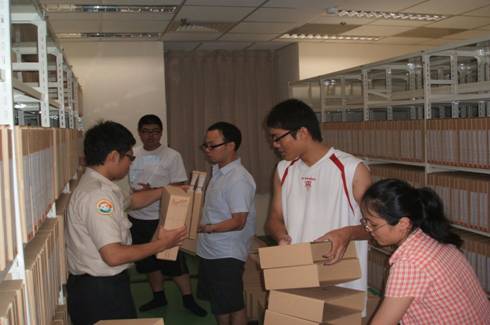 另依據「機關檔案管理作業手冊」基準改正,逐步改善及建置各項檔案設施,在長官全力支持與全體同仁共同努力下,完成檔案水損復原演練、庫房消防安全演練、改善檔案室地板承載重檔案架減重事宜、檔案夾外加裝字典盒改善水損措施等,使整個檔案室煥然一新,呈現不同以往之風貌;且檔案盒依年度、單位、分類、保存年限(標籤顏色,永久保存及定期保存)區分不同顏色,再依檔案大小順序排列整齊美觀,標示清楚,讓人一目瞭然。