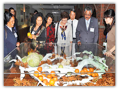 農業博覽館以農業時代人文背景為主軸,介紹苗栗各族群的農作生活樣貌,透過栩栩如生的在地農作蔬果臘模及原住民狩獵臘像,呈現閩南人、客家人、泰雅族、賽夏族等族群的飲食習慣,以及族群農作生活方式的專題展示。此外,並有農作展示區,以服務農民為主要訴求,從土壤肥料、有機農業、農作改良,到農特產品、行銷、加工及觀光休閒等,介紹改良場琳瑯滿目的試驗研究成果,令人目不瑕給。